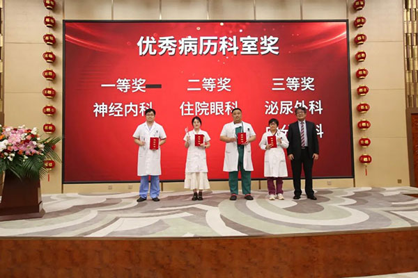 優秀出診醫師、優秀感控醫師、優秀住院總醫師、優秀管床醫師、優秀病曆個人獎、優秀病曆科室獎……今年,燕達醫院湧現出了一大批愛崗敬業、醫德高尚、醫患和諧的先進醫師典型。大會對上述獲獎人員進行了隆重表彰,與會院領導分别上台爲獲獎人員頒發榮譽證書。